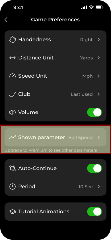 After your 5 shots expire, the app will display one free shot metric after each shot. You can choose between Ball Speed or Carry.